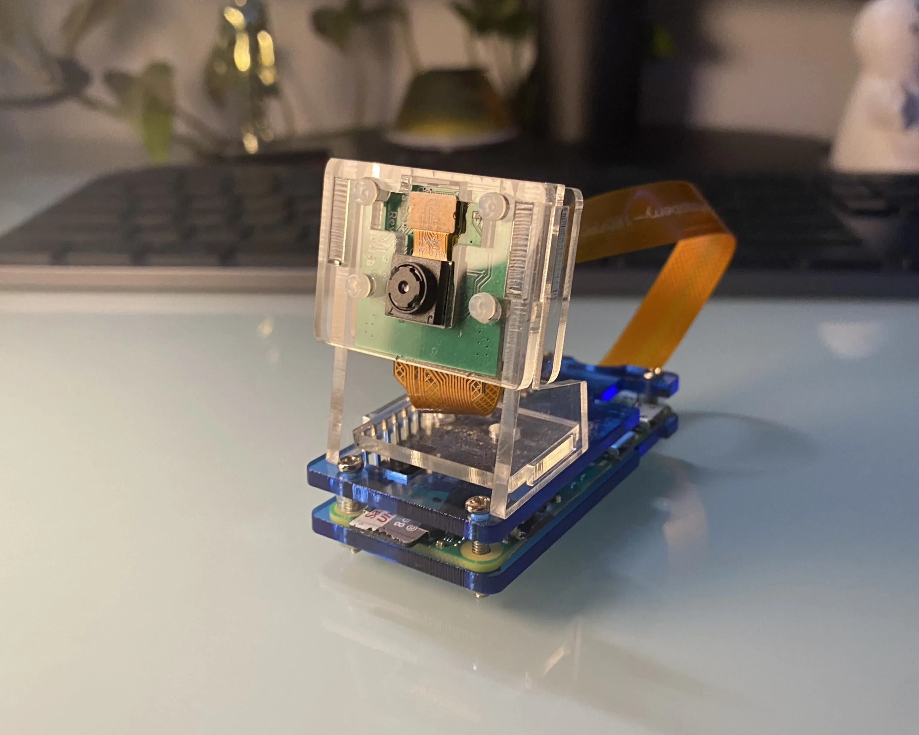 I used a Raspberry Pi Micro 2 along with a Camera Module to capture footage of the user. I then streamed the camera footage to my laptop using TCP - the Python script takes in this stream and then processes it.